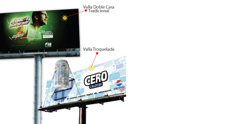 Piense en grande. Le ofrecemos una solución adecuada a sus necesidades. Pude agregar extensiones para aumentar la escala y salir de los límites del rectángulo para darle más libertada a su mensaje en vía pública